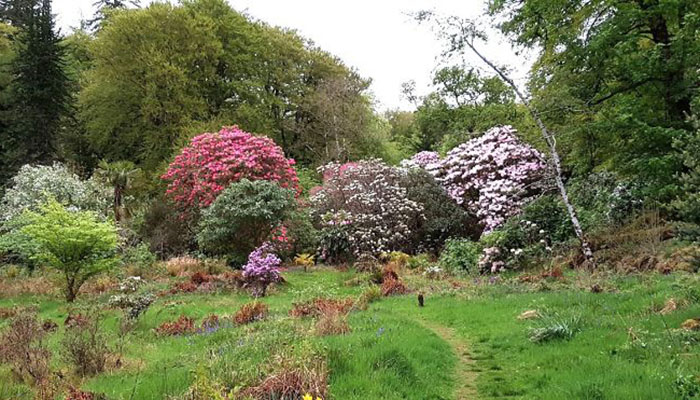 Progressive weathering of the schists, accelerated by intense grinding when the area was buried beneath the ice sheets that prevailed 22 and again 12 million years ago, has contributed to the good quality soils found around the garden. Massively enriched by centuries of rotted deciduous Atlantic woodland litter, these are mostly fertile and reasonably deep throughout the heart of the site, but lie only thinly on the steeper rocky slopes. Soil pH readings around the garden sit just on the acidic side of neutral, in the range 6.5 (on the slopes or in deep litter zones) to 6.8 (in the central bowl; all well suited to rhododendron cultivation. As in any west coast garden, drainage is vital, and additional channels have to be trenched and kept clear to avoid waterlogging, although the lowest elements of the southern boundary of the garden always remain quite boggy.